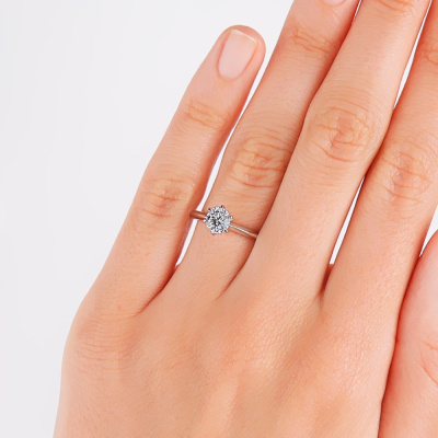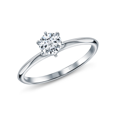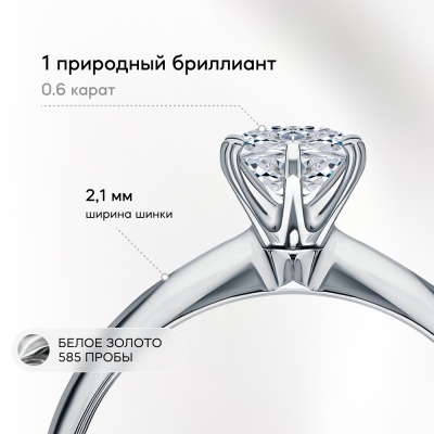 Кольцо «Бриллианты Якутии» с 1 бриллиантом, 0.6 карат, огранка круг 57 граней, цвет 3, чистота 6, тип огранки А; Белое золото 585 пробы.