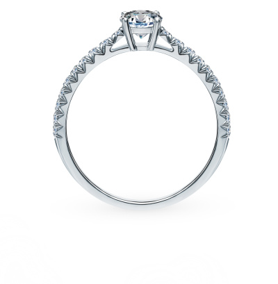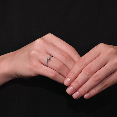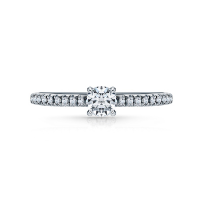Кольцо «Бриллианты Якутии» с 1 бриллиантом, 0.361 карат, огранка круг 57 граней, цвет 4, чистота 7, тип огранки А; 20 бриллиантами, 0.132 карат, огранка круг 57 граней, цвет 3, чистота 6, тип огранки А; Белое золото 585 пробы.