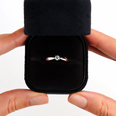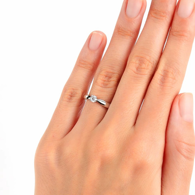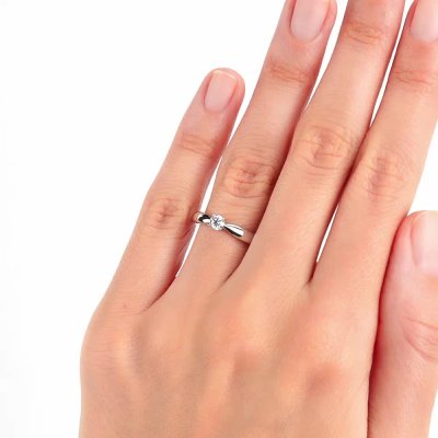 Кольцо с 1 бриллиантом природным, 0.196 карат, огранка круг 57 граней, цвет 3, чистота 6, тип огранки А; Белое золото 585 пробы.