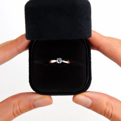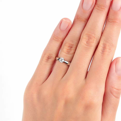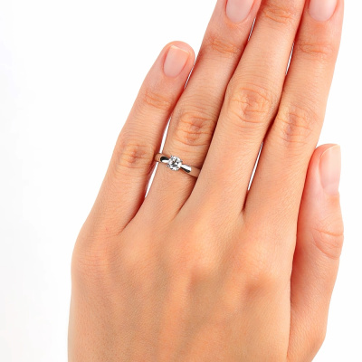 Кольцо с 1 бриллиантом природным, 0.26 карат, огранка круг 57 граней, цвет 3, чистота 6, тип огранки А; Белое золото 585 пробы.
