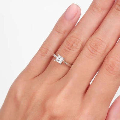 Кольцо с 1 бриллиантом природным, 0.5 карат, огранка принцесса 65 граней, цвет 4, чистота 6, тип огранки А; Белое золото 585 пробы.