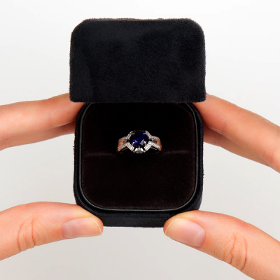Золотое кольцо с бриллиантами природными и сапфиром выращенным