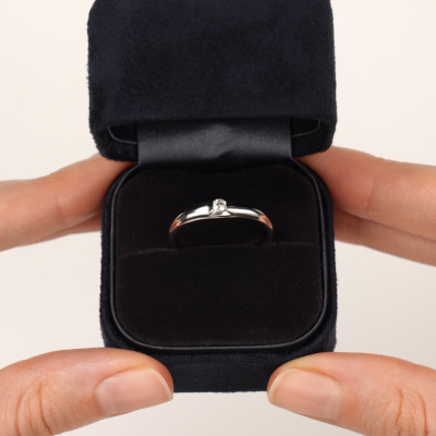 Кольцо с 1 бриллиантом природным, 0.109 карат, огранка круг 57 граней, цвет 3, чистота 6, тип огранки А; Белое золото 585 пробы.