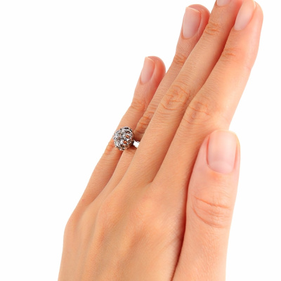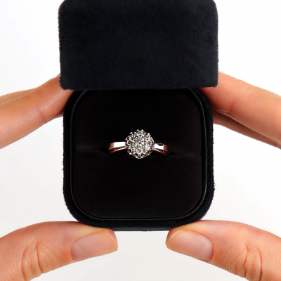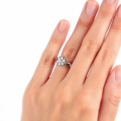 Кольцо с 1 бриллиантом природным, 0.096 карат, огранка круг 57 граней, цвет 3, чистота 6; 6 бриллиантами природными, 0.271 карат, огранка круг 57 граней, цвет 3, чистота 6; Розовое и белое золото 585 пробы.