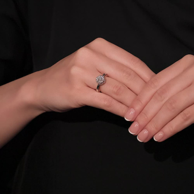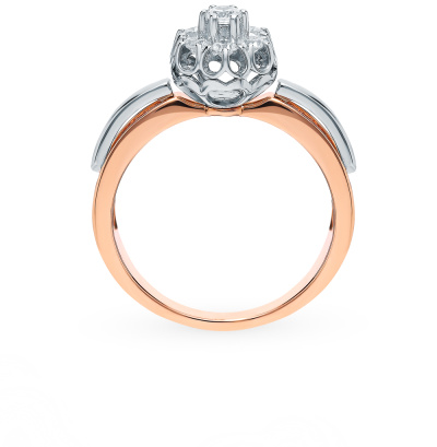 Кольцо с 1 бриллиантом природным, 0.09 карат, огранка круг 57 граней, цвет 3, чистота 6, тип огранки А; 6 бриллиантами природными, 0.28 карат, огранка круг 57 граней, цвет 3, чистота 6, тип огранки А; Розовое и белое золото 585 пробы.