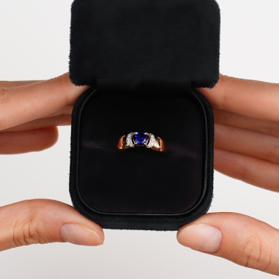 Золотое кольцо с бриллиантами природными и сапфирами выращенными