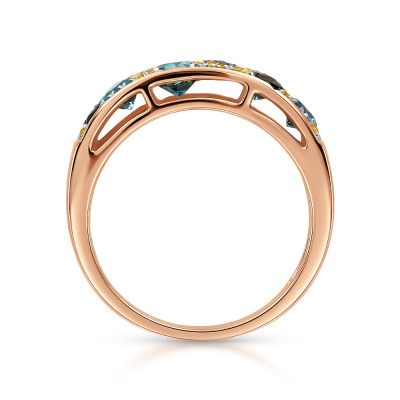 Кольцо с 63 бриллиантами природными, 0.148 карат, огранка круг 17 граней, цвет 2, чистота 3, тип огранки Б; 1 топазом свисс природным, 0.32 карат; 3 топазами свисс природными, 0.38 карат; 1 топазом свисс природным, 0.044 карат; 2 сапфирами природными, 0.082 карат, цвет 2, чистота 2, тип огранки В; 2 сапфирами природными, 0.053 карат, цвет 2, чистота 2, тип огранки В; Розовое золото 585 пробы.