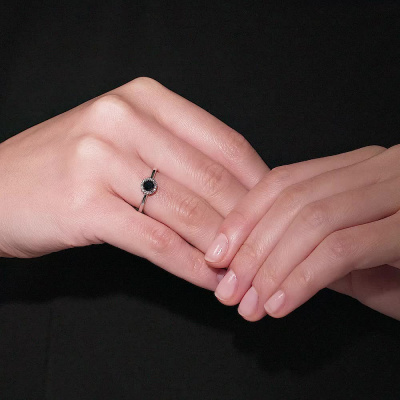 Кольцо с 16 бриллиантами природными, 0.05 карат, огранка круг 17 граней, цвет 2, чистота 2, тип огранки А; 1 сапфиром природным, 0.29 карат, цвет 2, чистота 2, тип огранки В; Белое золото 585 пробы.