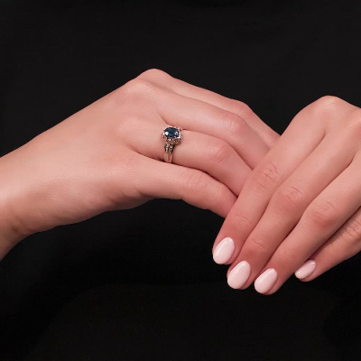 Золотое кольцо с бриллиантами природными и сапфирами природными