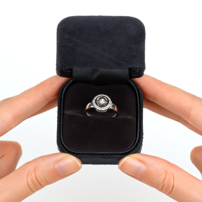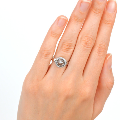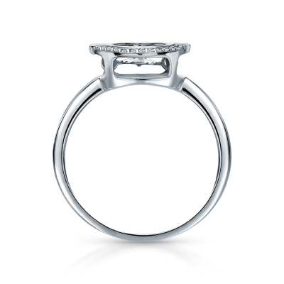 Кольцо с 1 бриллиантом природным, 0.021 карат, огранка круг 57 граней, цвет 4, чистота 5, тип огранки А; 28 бриллиантами природными, 0.077 карат, огранка круг 17 граней, цвет 2, чистота 3, тип огранки А; Белое золото 585 пробы.