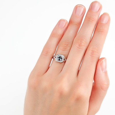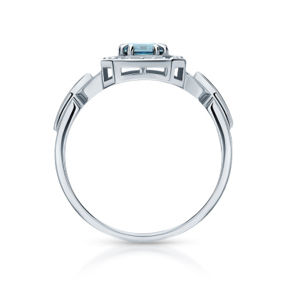 Кольцо с 20 бриллиантами природными, 0.07 карат, огранка круг 17 граней, цвет 2, чистота 2, тип огранки А; 10 бриллиантами природными, 0.02 карат, огранка круг 17 граней, цвет 2, чистота 2, тип огранки А; 1 топазом лондон природным, 0.38 карат; Белое золото 585 пробы.