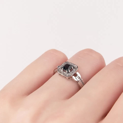 Кольцо с 20 бриллиантами природными, 0.07 карат, огранка круг 17 граней, цвет 2, чистота 2, тип огранки А; 10 бриллиантами природными, 0.02 карат, огранка круг 17 граней, цвет 2, чистота 2, тип огранки А; 1 топазом лондон природным, 0.41 карат; Белое золото 585 пробы.