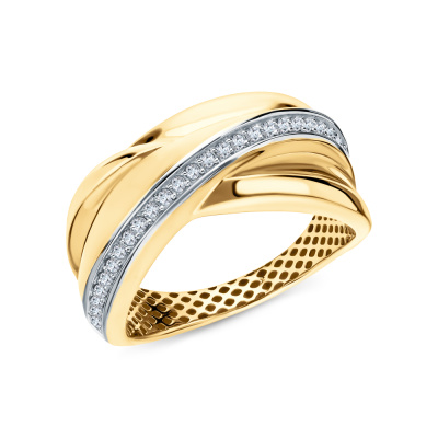 Кольцо с 25 бриллиантами природными, 0.1 карат, огранка круг 17 граней, цвет 2, чистота 3, тип огранки А; Желтое золото 585 пробы.