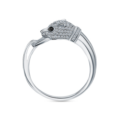 Кольцо с 22 бриллиантами природными, 0.09 карат, огранка круг 17 граней, цвет 2, чистота 2, тип огранки А; 86 бриллиантами природными, 0.18 карат, огранка круг 17 граней, цвет 2, чистота 2, тип огранки А; 2 бриллиантами черными природными облагороженными, 0.007 карат, огранка круг 57 граней, цвет 7, чистота 6, тип огранки А; Белое золото 585 пробы.
