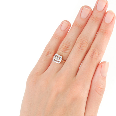 Кольцо с 16 бриллиантами природными, 0.04 карат, огранка круг 17 граней, цвет 2, чистота 2, тип огранки А; Розовое и белое золото 585 пробы.