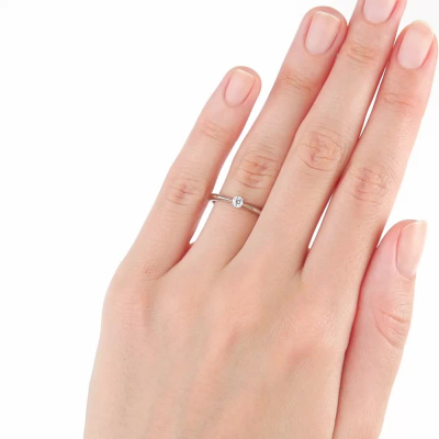 Кольцо с 1 бриллиантом природным, 0.19 карат, огранка круг 57 граней, цвет 3, чистота 6, тип огранки А; Белое золото 585 пробы.