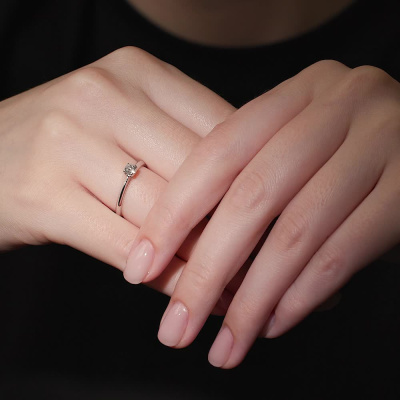 Кольцо с 1 бриллиантом природным, 0.22 карат, огранка круг 57 граней, цвет 3, чистота 6, тип огранки А; Белое золото 585 пробы.