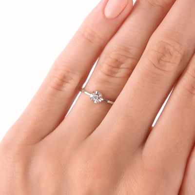 Кольцо с 1 бриллиантом природным, 0.02 карат, огранка круг 57 граней, цвет 3, чистота 6, тип огранки А; Белое золото 585 пробы.