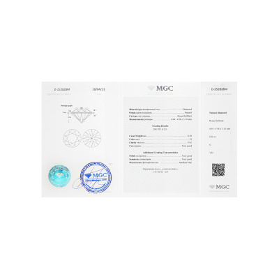 Кольцо с 1 бриллиантом природным, 0.5 карат, огранка круг 57 граней, цвет 3, чистота 6, тип огранки А; Белое золото 585 пробы.