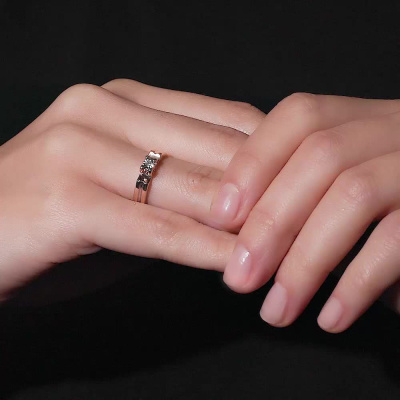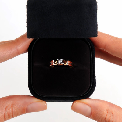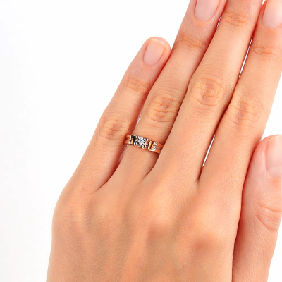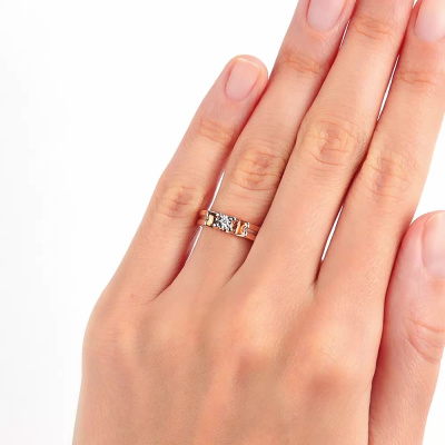 Кольцо с 1 бриллиантом природным, 0.02 карат, огранка круг 57 граней, цвет 3, чистота 6, тип огранки А; Розовое и белое золото 585 пробы.