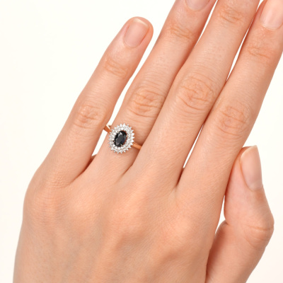 Золотое кольцо с бриллиантами природными и сапфиром природным