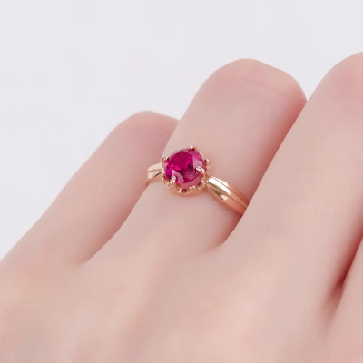 Кольцо с 1 рубином синтетическим, 1.05 карат; Розовое золото 585 пробы.