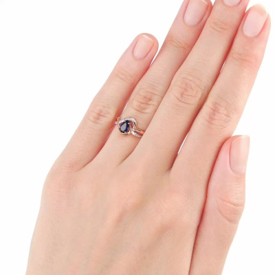 Кольцо с 6 бриллиантами природными, 0.02 карат, огранка круг 17 граней, цвет 2, чистота 2; 1 сапфиром синтетическим, 0.48 карат; Розовое золото 585 пробы.