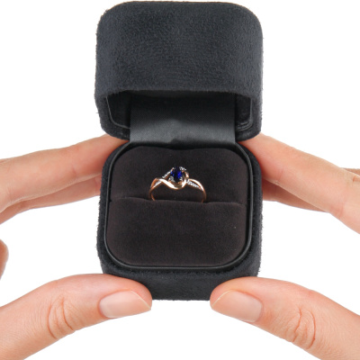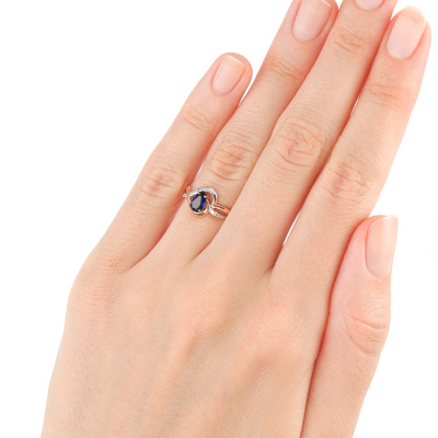 Кольцо с 6 бриллиантами природными, 0.02 карат, огранка круг 17 граней, цвет 2, чистота 2; 1 сапфиром синтетическим, 0.49 карат; Розовое золото 585 пробы.