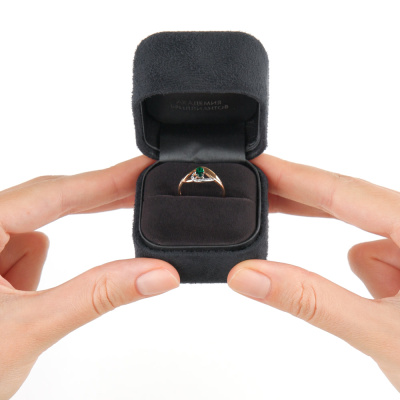 Кольцо с 7 бриллиантами природными, 0.03 карат, огранка круг 17 граней, цвет 2, чистота 2, тип огранки А; 1 гидротермальным изумрудом, 0.19 карат; Розовое золото 585 пробы.