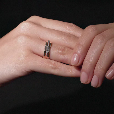 Кольцо с 14 бриллиантами природными, 0.05 карат, огранка круг 17 граней, цвет 2, чистота 2, тип огранки А; Розовое золото 585 пробы.