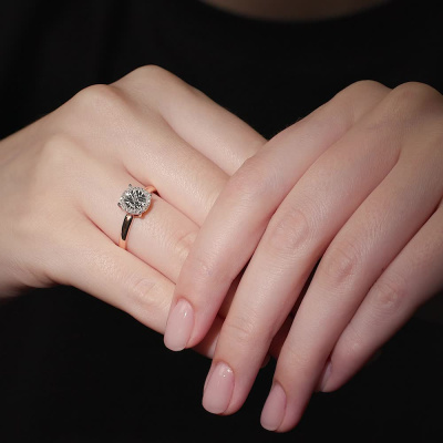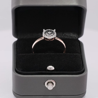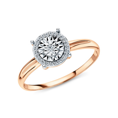Кольцо с 1 бриллиантом природным, 0.01 карат, огранка круг 57 граней, цвет 4, чистота 6, тип огранки А; 24 бриллиантами природными, 0.05 карат, огранка круг 17 граней, цвет 2, чистота 2, тип огранки А; Розовое и белое золото 585 пробы.