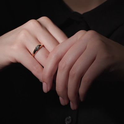 Кольцо с 1 бриллиантом природным, 0.07 карат, огранка круг 57 граней, цвет 3, чистота 5, тип огранки А; Розовое и белое золото 585 пробы.