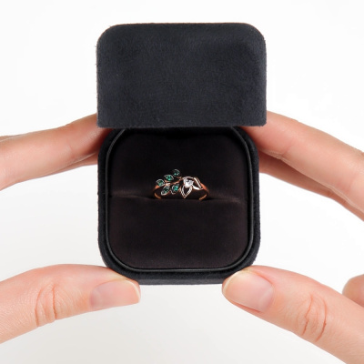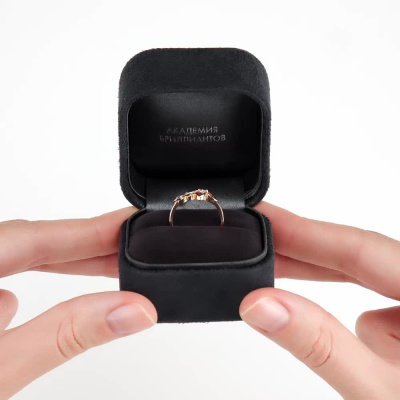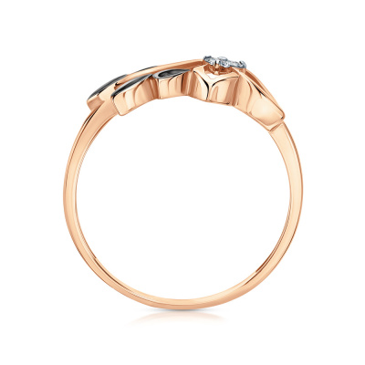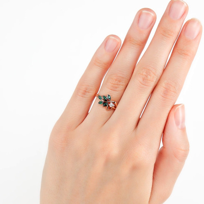 Кольцо с 3 бриллиантами природными, 0.024 карат, огранка круг 17 граней, цвет 2, чистота 2, тип огранки Б; 5 гидротермальными изумрудами, 0.067 карат; Розовое золото 585 пробы.