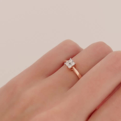 Кольцо с 4 бриллиантами природными, 0.12 карат, огранка круг 57 граней, цвет 3, чистота 6, тип огранки А; Розовое золото 585 пробы.
