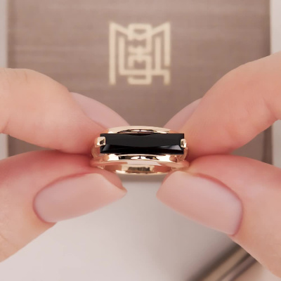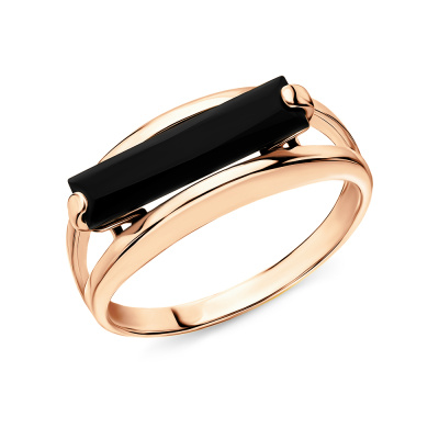 Кольцо с 1 агатом черным природным; Розовое золото 585 пробы.
