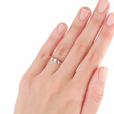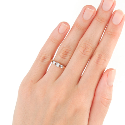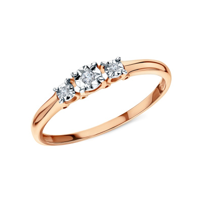 Кольцо с 1 бриллиантом природным, 0.03 карат, огранка круг 57 граней, цвет 3, чистота 6, тип огранки А; 2 бриллиантами природными, 0.01 карат, огранка круг 57 граней, цвет 3, чистота 6, тип огранки А; Розовое золото 585 пробы.