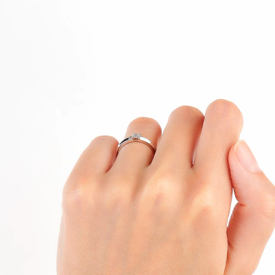 Кольцо с 9 бриллиантами природными, 0.02 карат, огранка круг 17 граней, цвет 2, чистота 2, тип огранки А; Белое золото 585 пробы.