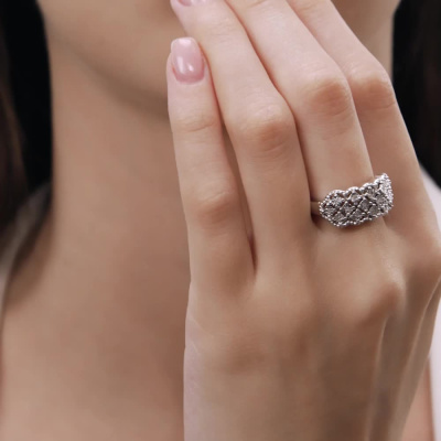 Кольцо с 16 бриллиантами природными, 0.06 карат, огранка круг 17 граней, цвет 2, чистота 4, тип огранки Б; Серебро 925 пробы.