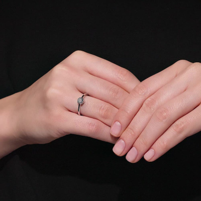 Кольцо с 1 бриллиантом природным, 0.01 карат, огранка круг 17 граней, цвет 2, чистота 4, тип огранки Б; Серебро 925 пробы.