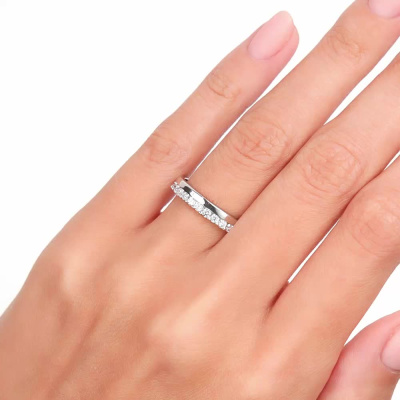 Кольцо с 28 бриллиантами природными, 0.85 карат, огранка круг 57 граней, цвет 3, чистота 6, тип огранки А; Белое золото 585 пробы.