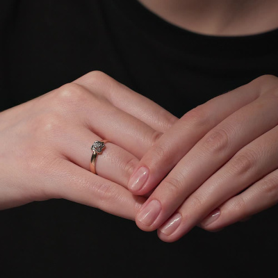 Кольцо с 1 бриллиантом природным, 0.02 карат, огранка круг 57 граней, цвет 3, чистота 6; Розовое и белое золото 585 пробы.