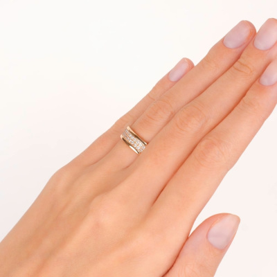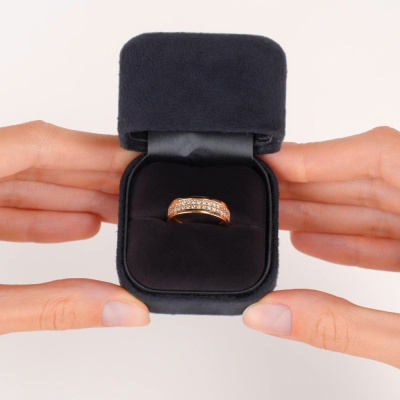 Кольцо с 36 бриллиантами природными, 0.39 карат, огранка круг 57 граней, цвет 3, чистота 6, тип огранки А; Розовое золото 585 пробы.