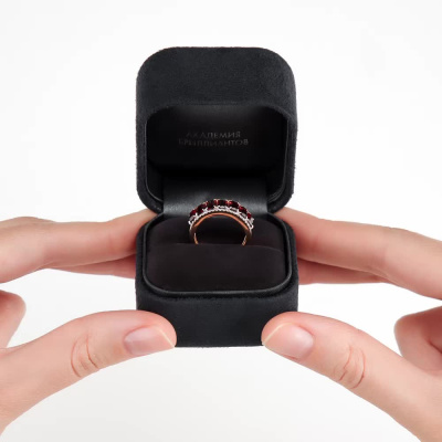 Золотое кольцо с бриллиантами природными и гранатами природными
