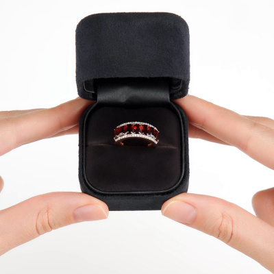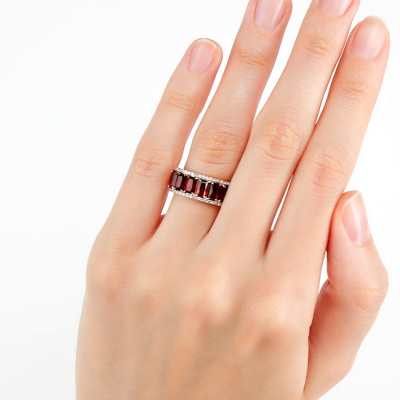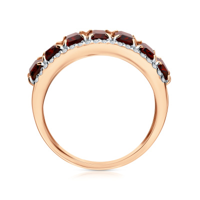 Кольцо с 40 бриллиантами природными, 0.136 карат, огранка круг 17 граней, цвет 2, чистота 2, тип огранки А; 7 гранатами природными, 2.303 карат; Розовое золото 585 пробы.
