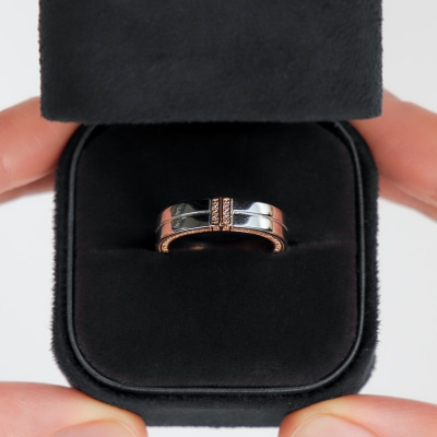 Кольцо с 144 бриллиантами природными, 0.27 карат, огранка круг 17 граней, цвет 2, чистота 2, тип огранки А; Розовое золото 585 пробы.