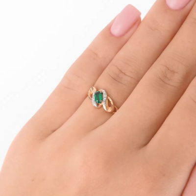 Золотое кольцо с бриллиантами природными и изумрудами выращенными