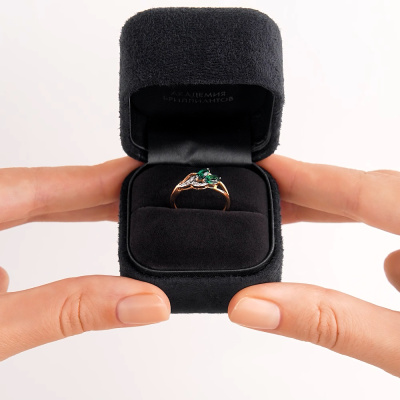 Золотое кольцо с бриллиантами природными и изумрудами выращенными