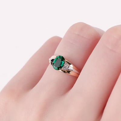 Кольцо с 4 бриллиантами природными, 0.02 карат, огранка круг 17 граней, цвет 2, чистота 2, тип огранки Б; 1 гидротермальным изумрудом, 0.77 карат, тип огранки Б; Розовое золото 585 пробы.
