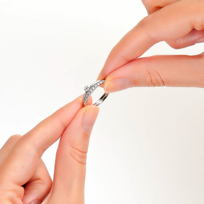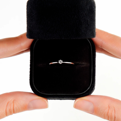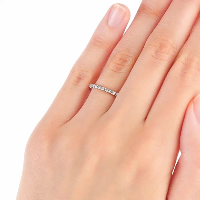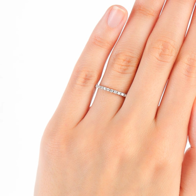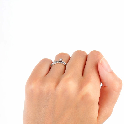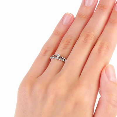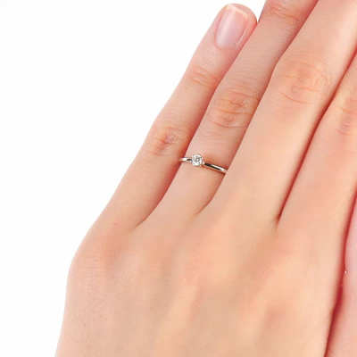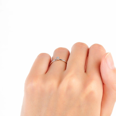 Кольцо с 1 бриллиантом, 0.08 карат, огранка круг 57 граней, цвет 3, чистота 6, тип огранки А; 11 бриллиантами, 0.12 карат, огранка круг 57 граней, цвет 3, чистота 6, тип огранки А; Белое золото 585 пробы.