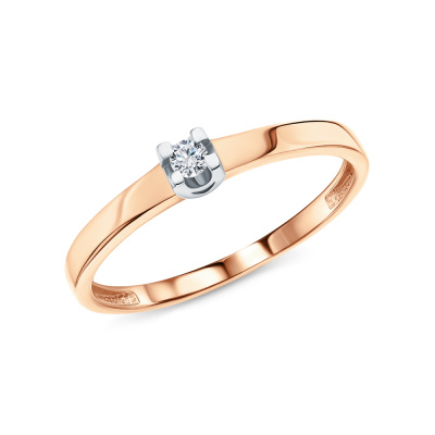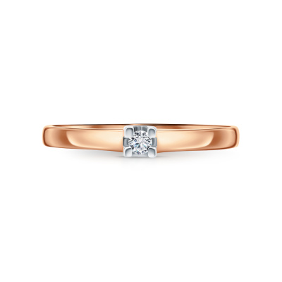 Кольцо с 1 бриллиантом, 0.04 карат, огранка круг 57 граней, цвет 3, чистота 6, тип огранки А; Розовое золото 585 пробы.